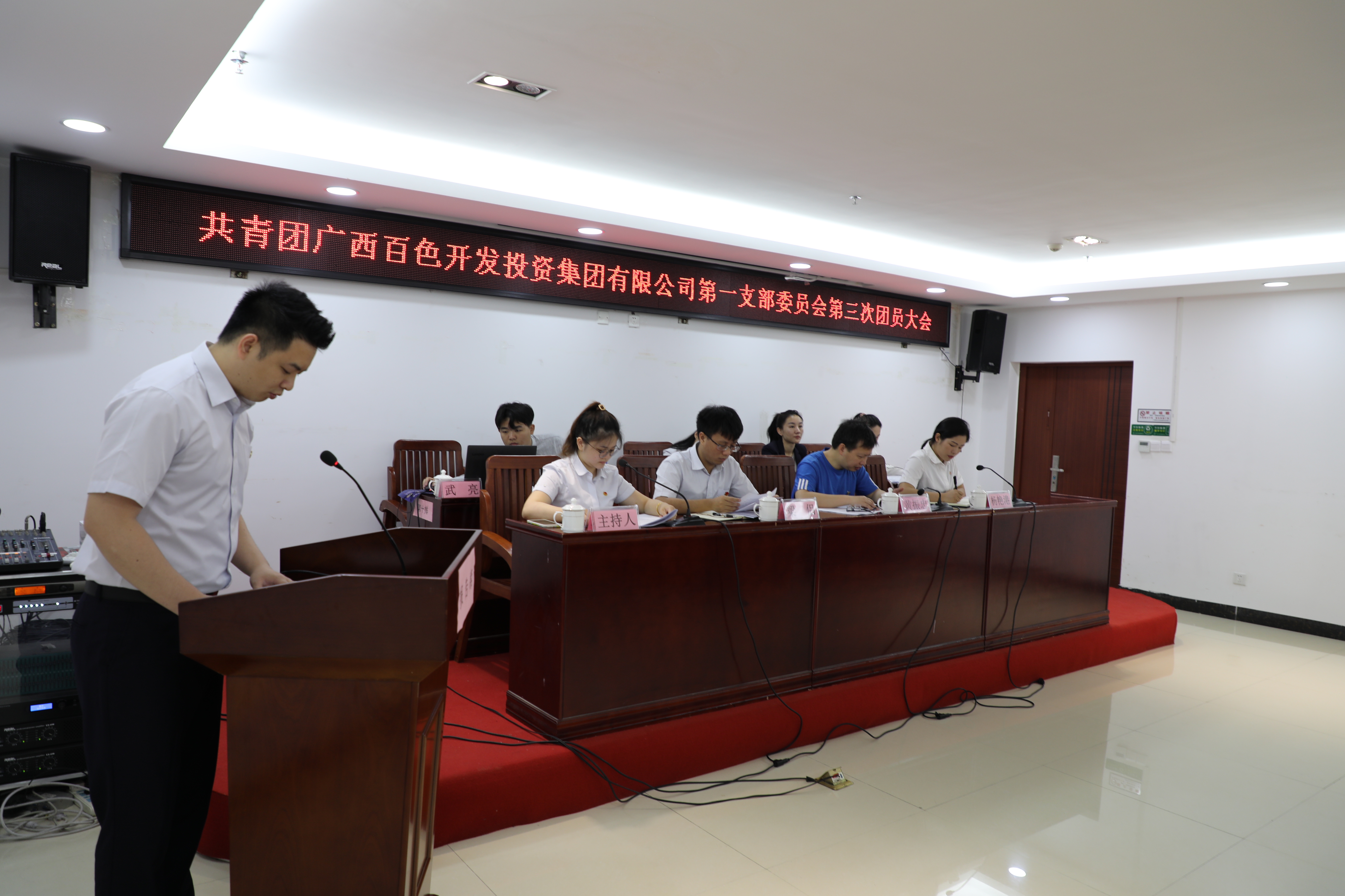 為選舉共青團(tuán)廣西百色開發(fā)投資集團(tuán)有限公司第一支部第三屆委員會委員,4月22日上午,集團(tuán)公司第一團(tuán)支部在四樓大會議室召開團(tuán)員大會。集團(tuán)公司總裁助理黃振忠同志出席本次會議。