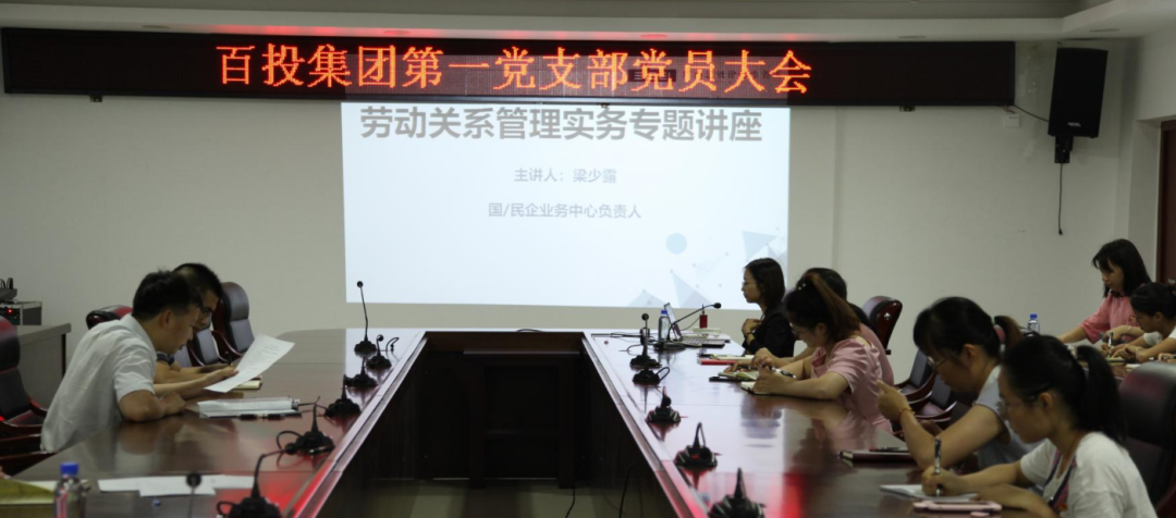 本次法律沙龍圍繞“勞動關(guān)系管理實務(wù)”開展,邀請了廣西思貝律師事務(wù)所國/民企業(yè)務(wù)中心負(fù)責(zé)人梁少露律師到現(xiàn)場進(jìn)行講解。第一黨支部書記、總裁助理黃振忠主持活動,支部全體黨員與法務(wù)監(jiān)審部全體員工共同參加。