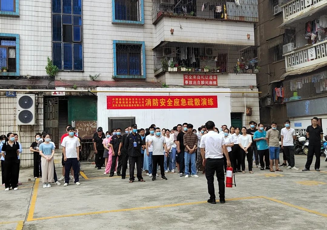 為切實(shí)加強(qiáng)項(xiàng)目安全管理工作,提升火災(zāi)應(yīng)急救援水平,提高員工消防安全意識(shí)和自救互救能力,6月28日上午,百旺物業(yè)公司聯(lián)合中國(guó)通信服務(wù)有限公司百色分公司、廣西泰通建設(shè)有限公司在老城片區(qū)電信項(xiàng)目開(kāi)展消防安全應(yīng)急演練活動(dòng)。