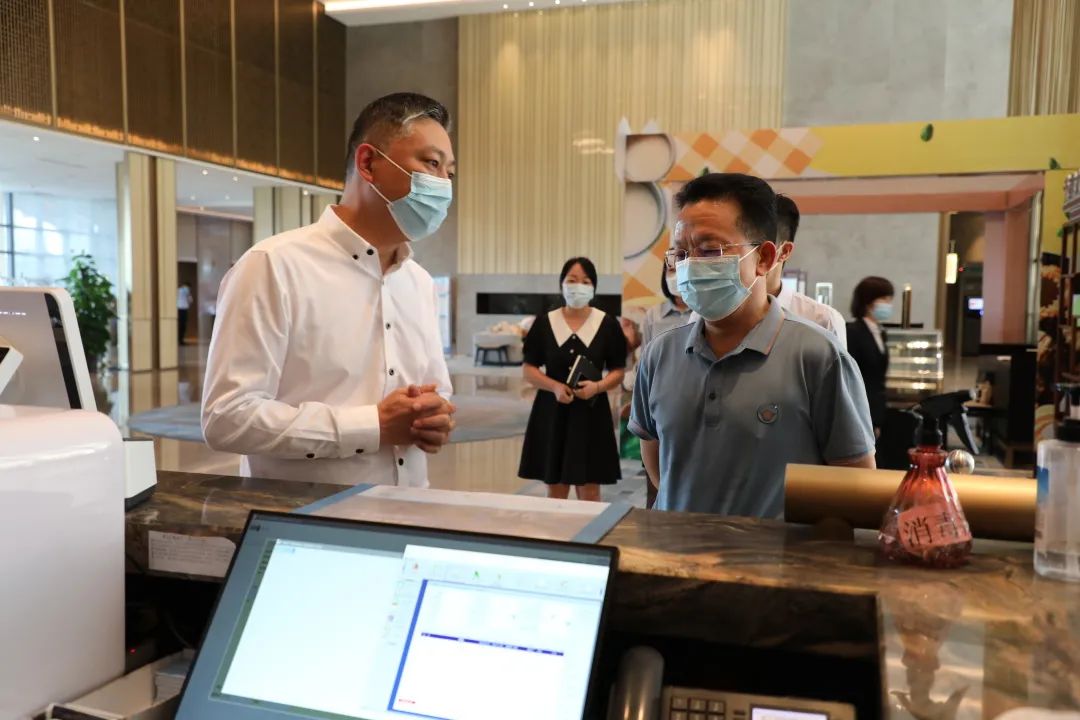 在廣悅公司,李文堅(jiān)在相關(guān)負(fù)責(zé)人的陪同下,到百色飯店(百色溫德姆度假酒店)總臺、大門入口、電梯、會議室門口等人流較多地點(diǎn)察看了疫情防控措施及各點(diǎn)防疫物品配備情況。隨后,到廣悅公司黨支部察看了黨建文化長廊,了解支部建設(shè)情況,聽取支部負(fù)責(zé)人介紹黨支部在發(fā)揮戰(zhàn)斗堡壘作用,黨員先鋒模范作用以及加強(qiáng)黨建促進(jìn)企業(yè)改革發(fā)展等方面的情況。李文堅(jiān)對廣悅公司近段時間來抓黨建促發(fā)展工作、加強(qiáng)防疫工作和飯店經(jīng)營工作取得成效給予充分肯定。