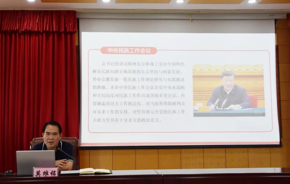 莫維銘圍繞習(xí)近平總書記關(guān)于加強(qiáng)和改進(jìn)民族工作的重要思想、中央民族工作會(huì)議精神和民族團(tuán)結(jié)有關(guān)政策,結(jié)合百色實(shí)際進(jìn)一步解讀了自治區(qū)黨委關(guān)于建設(shè)鑄牢中華民族共同體意識(shí)示范區(qū)的戰(zhàn)略部署和目標(biāo)任務(wù)體系,號(hào)召大家爭(zhēng)當(dāng)建設(shè)鑄牢中華民族共同體意識(shí)示范區(qū)的引領(lǐng)者、推動(dòng)者、實(shí)踐者,確保鑄牢中華民族共同體意識(shí)示范區(qū)建設(shè)有形、有感、有效。通過深入淺出的講解,讓與會(huì)人員對(duì)做好新時(shí)代民族工作的重要性有了深刻的認(rèn)識(shí)。